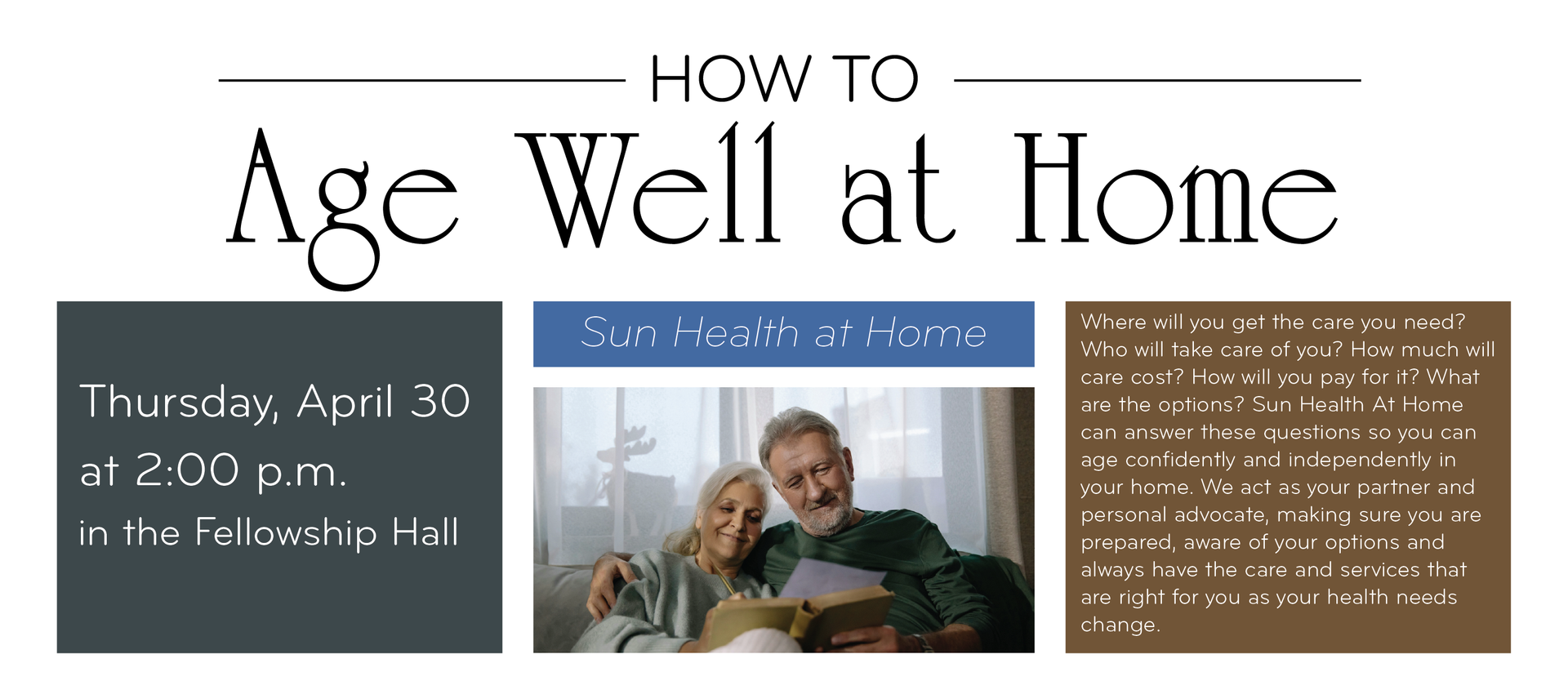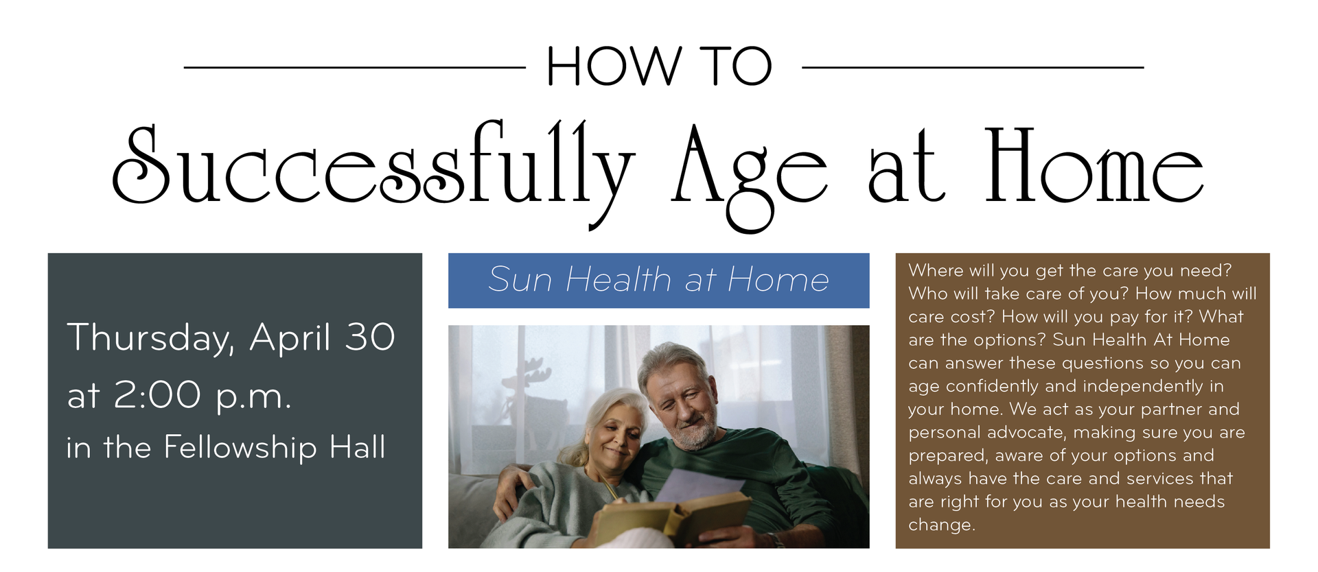 Scroll through the banners for information about our upcoming events. Questions? Contact the Church Office. We will be happy to assist you!